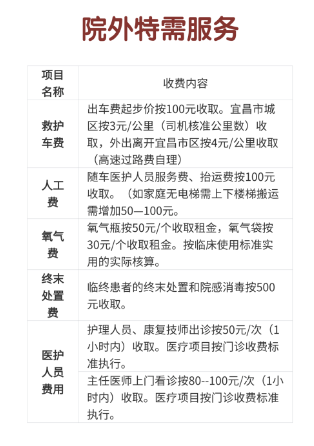 医护上门:资深护理人员或康复技师上门服务费为 100元/次;主任医师上门看诊费为 200元/次,上门期间实施的医疗项目按本院门诊标准另行收费。